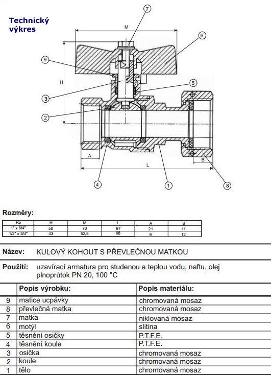 Armatura pro studenou i teplou vodu a jiná neagresívní média.